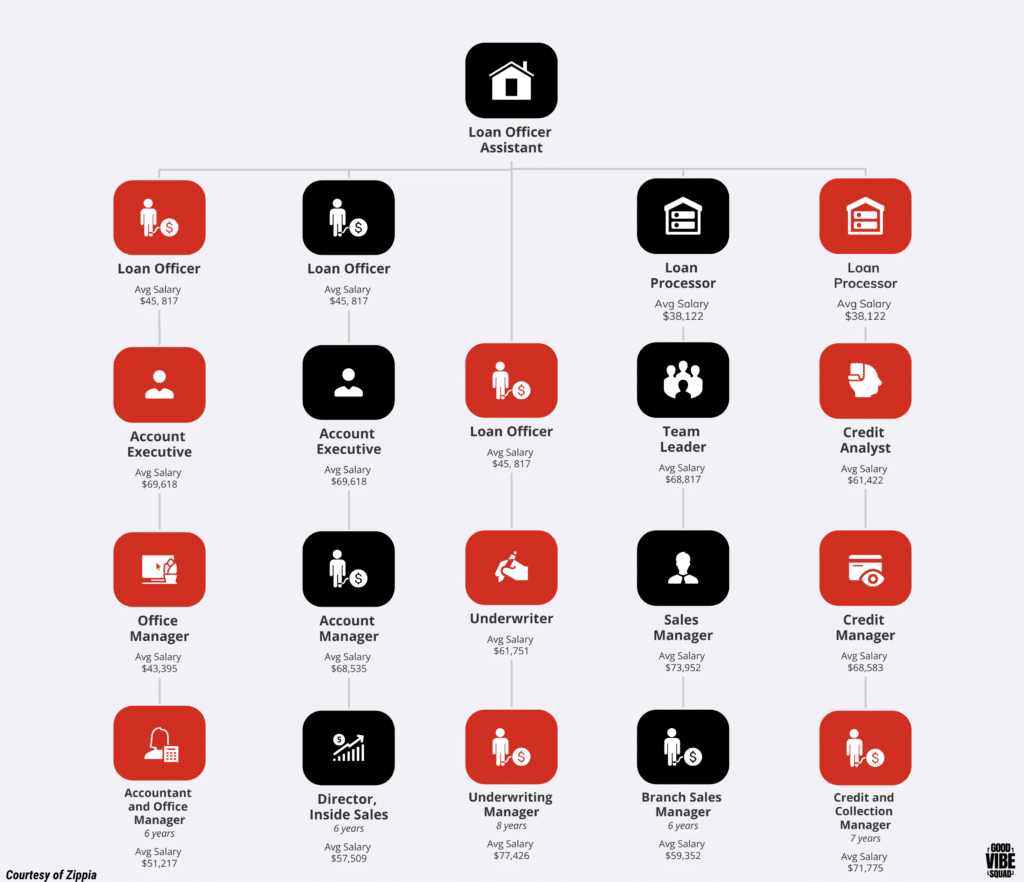 As they grow in their roles, LOAs can advance their careers and take on more responsibilities in the future such as transitioning to becoming a Loan Officer, Office Manager, Underwriter, or Branch Manager among several other titles and career paths. These different career paths are outlined on Zippia and down below.